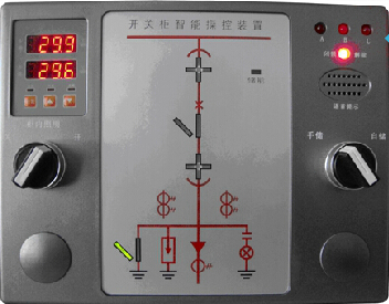 無(wú)源接點(diǎn)輸入閉合,紅色05 垂直模擬條發(fā)光,顯示接地開關(guān)合閘。